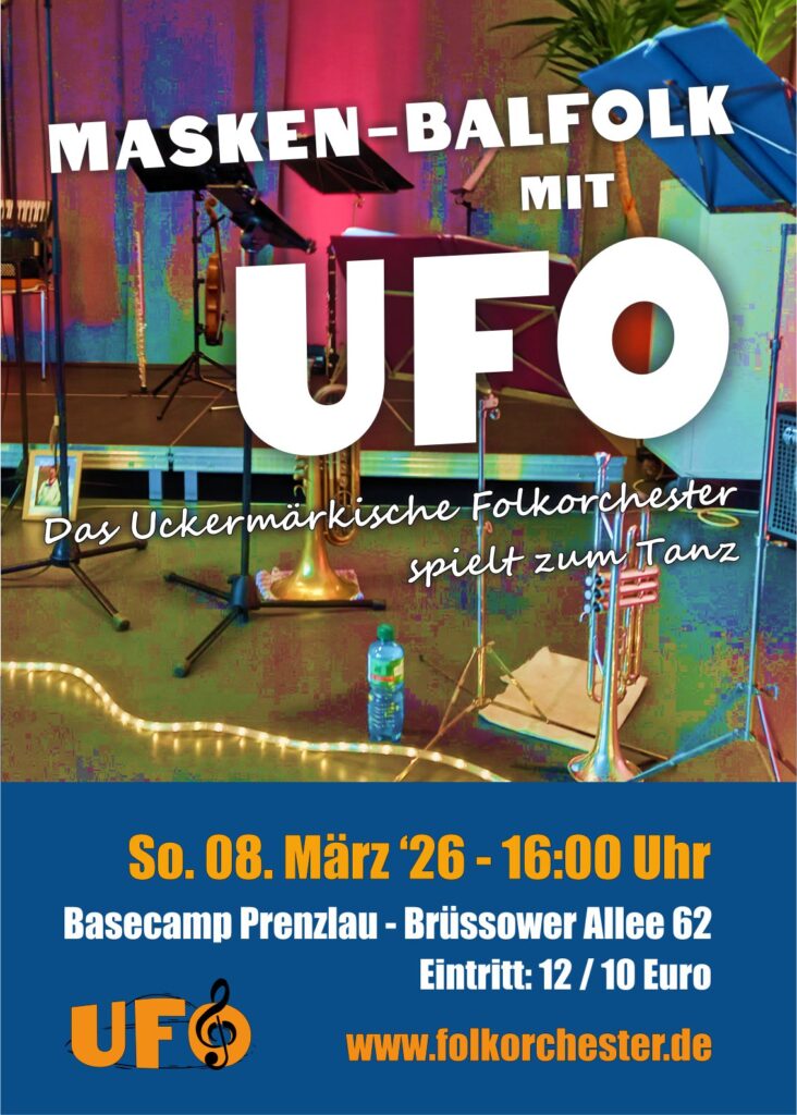 Seit 2008 spielt das Uckermärkische Folkorchester zum Tanz auf. Europäische Paar-, Kreis- und Gassentänze in der Tradition des Balfolk. Mitreißende Tanzmusik, 12 Musiker*innen – das verspricht in jedem Fall ein fröhliches Beisammensein zu werden.